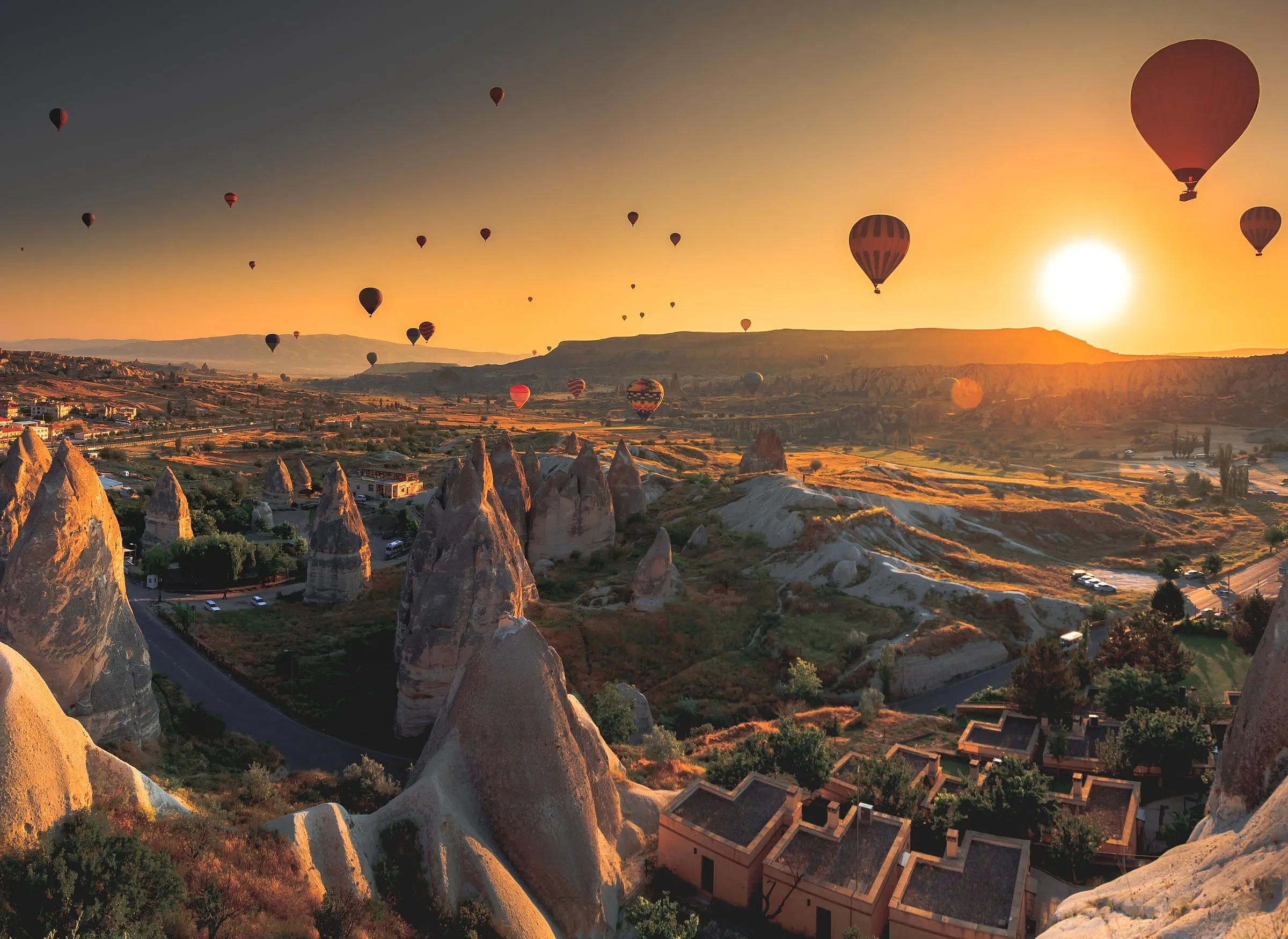 - •Witness Cappadocia from above during a breathtaking sunrise flight, drifting over fairy chimneys, valleys, and unique rock formations